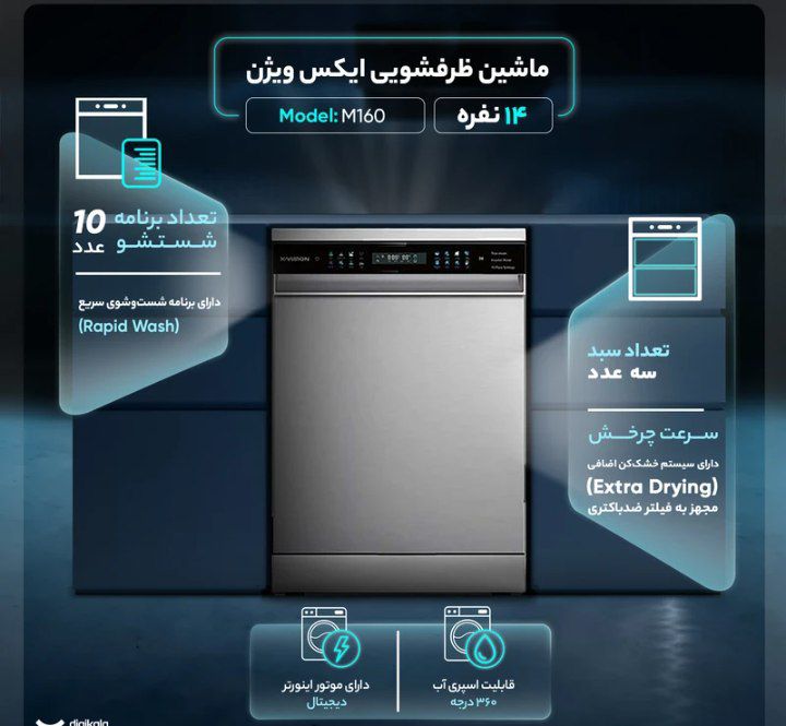 ماشین ظرفشویی ایکس ویژن نقره ای M160
