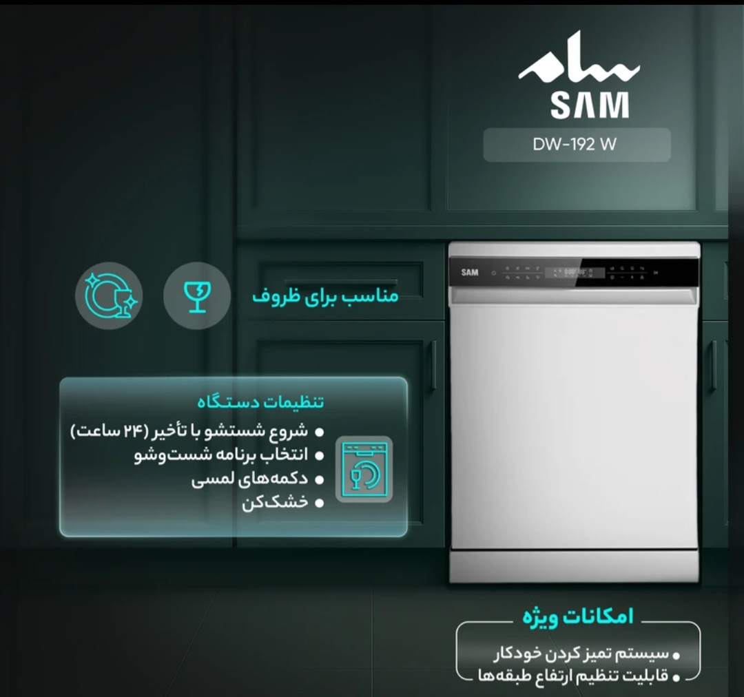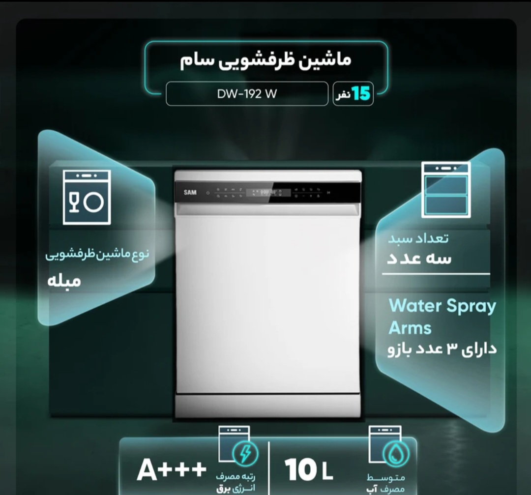 ماشین ظرفشویی سام 15 نفره مدل DW192 سفید