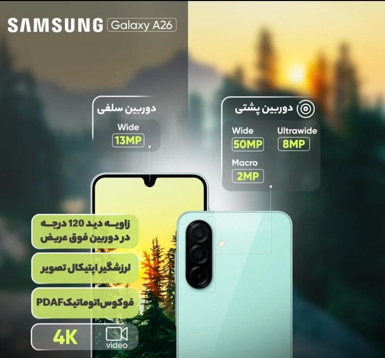قابلیت های شارز:شارز با سیم توان شارز:25وات ظرفیت باتری:5000میلی امپر ساعت حسگرها: اثر انگشت روی لبه-شتاب سنج-قطب نما-زیروسکوب نسخه سیستم عامل:15اندروید سیستم عامل:اندروید اسپیکر:مونو مشخصات دوربین:دریچه دیافراگمf/2.2-سایز لنز1/3.06اینچ-قابلیت ثبت تصاویر با پیکسل هایی به اندازه 1.12میکرومتر-امکان فیلم برداری با رزولوشن1080pبا سرعت30فریم بر ثانیه رزولوشن دوربین سلفی:13مگاپیکسل ریجن:ویتنام دسته بندی:میان رده مقاوم در برابر نفوذ گردوغبار - مقاوم دربرابر نفوذ اب تعداد سیم کارت:2عدد نرخ به روز رسانی تصویر:120 هرتز اندازه:6.7 اینچ